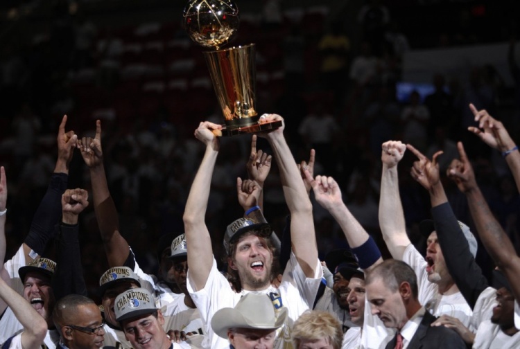 In the 2011 playoffs, the third-placed Mavericks in the West defeated the Trail Blazers, the Lakers (second in the West), the Thunder (fourth in the West), and the Heat (second in the East), winning the first championship in team history.