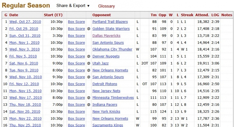 In that season, the Clippers had only 1 win and 12 losses in the first 13 games, and the final record was 32 wins and 50 losses.