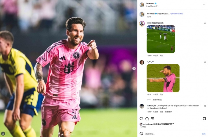 Messi led his team to advance with 2 goals and 1 assist in this game, and Inter Miami will face Cincinnati in the next round. After the game, Messi updated his ins and wrote: We continue to rush @MiamiInternational