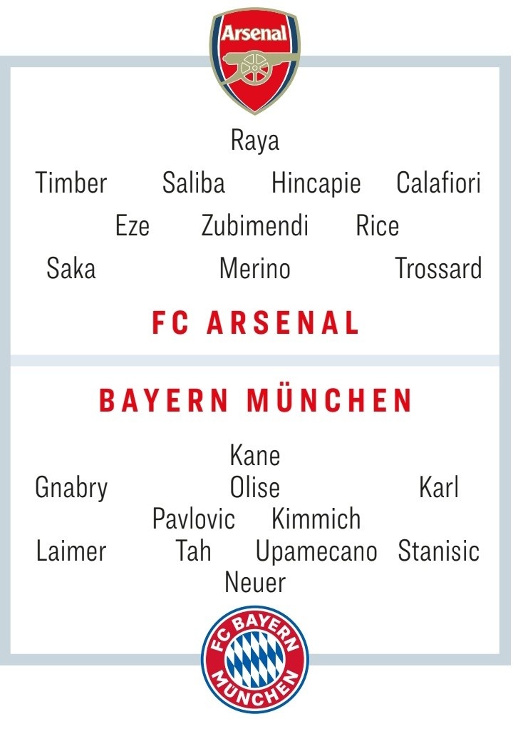 Bayern and Arsenal each achieved great victories in this round of league games. The two teams will also face a battle for the top spot in the Champions League in midweek. Bayern will challenge Arsenal as a guest. "Kicker" also predicted the starting lineup of both sides: