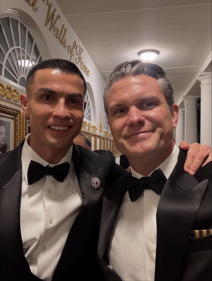 U.S. Secretary of War Hegseth posted a series of photos on his personal social media, including a photo with Ronaldo during a dinner.