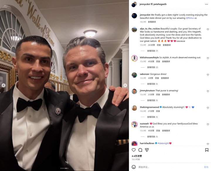 FootballU.S. Secretary of War Hegseth posted a series of photos on his personal social media, including a photo with Ronaldo during a dinner. In the photo, Ronaldo and Hegseth are holding hands and smiling brightly. Ronaldo and his fiancée Georgina appeared...