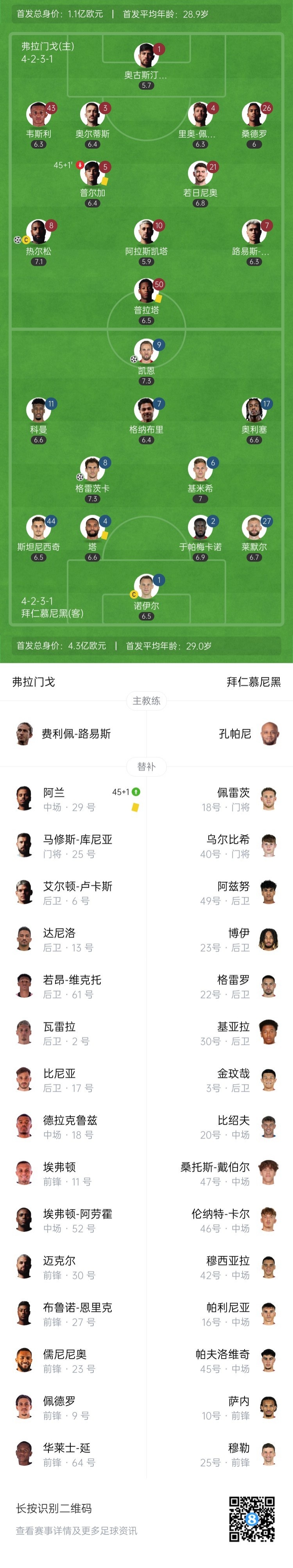 Football World Cup 1/8 finals, Flamenco plays against Bayern Munich, and the game is held at the Hard Rock Stadium in Miami. In the first half, Purga scored an own goal, Kane scored a goal in Gretzka's world wave, and Gerson scored a goal. After halftime, Flamenco 1-3 Bayern.