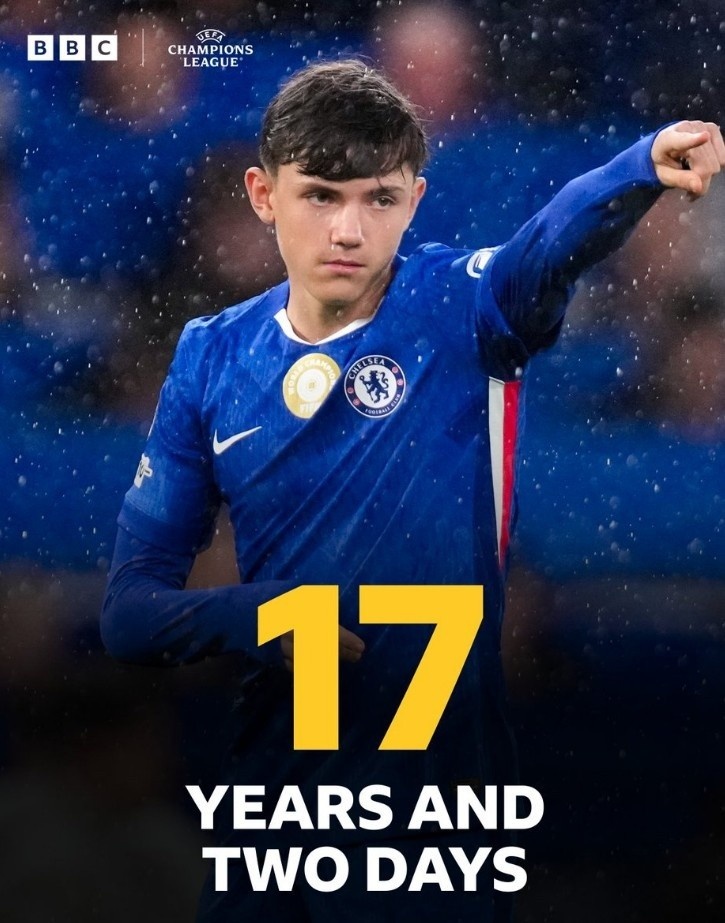The German Transfer Market counted the 10 youngest players in the Champions League this season on its social media. Among them, Chelsea teenager Walsh topped the list at 17 years and 2 days.