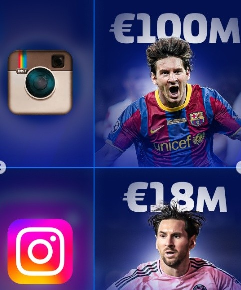 Germany posted a picture showing the changes in market value of many world-class stars such as Messi and Ronaldo at different stages of their careers.