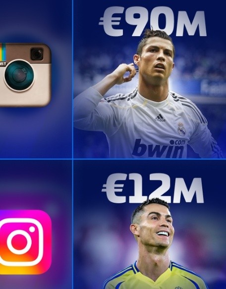 The historical worth of German stars: Cristiano Ronaldo once was worth 90 million euros and is currently worth 12 million; Messi is now worth 18 million