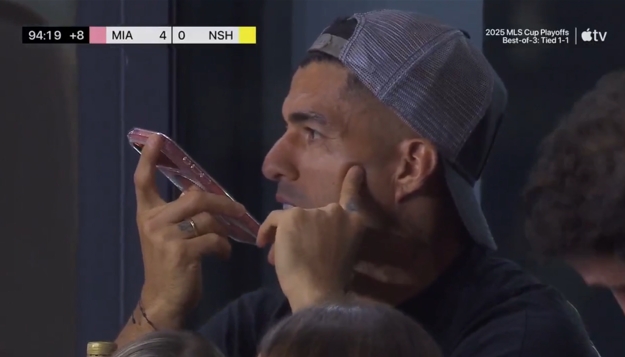 Watching the game is so easy! Miami leads by 4 goals, Suarez chats on his mobile phone on the sidelines